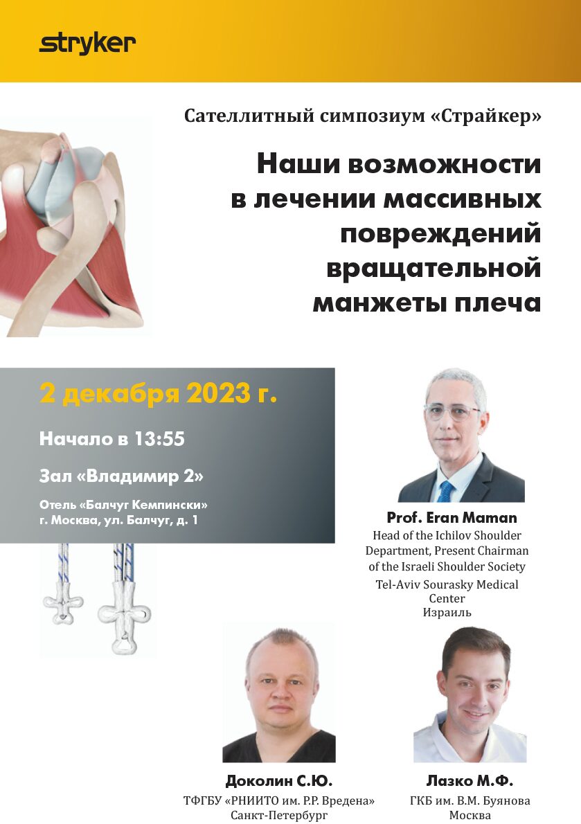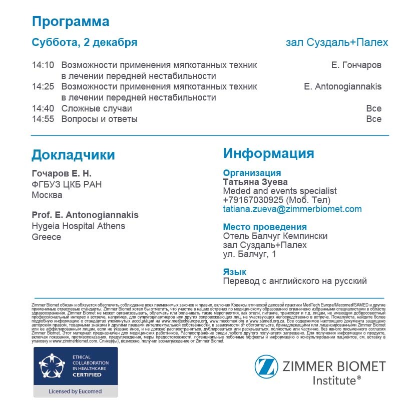 13:55‒15:25 Ланч-симпозиум Zimmer. Залы «Суздаль», «Палех» Роль мягкотканных техник в лечении травматической нестабильности плечевого сустава