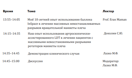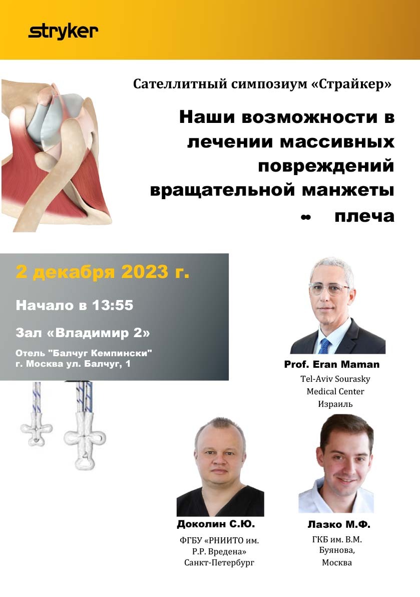 13:55‒15:25 Ланч-симпозиум Stryker. Зал «Владимир-2» Наши возможности в лечении массивных повреждений вращательной манжеты плеча